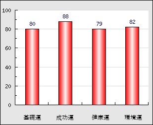 環境運 家庭や職場等での援助運・環境運を司ります。これが良いと配偶者や子供・職場の同僚などから助力が得られやすく、悪いと波乱・不和・孤独などがあります。 82点
