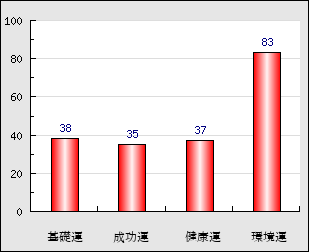 環境運 家庭や職場等での援助運・環境運を司ります。これが良いと配偶者や子供・職場の同僚などから助力が得られやすく、悪いと波乱・不和・孤独などがあります。 83点