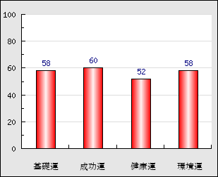 成功運 目的に対する成功運の強さをあらわします。この点数が高いほど自分の思い通りに成功し、逆に悪いと逆境・批判・障害などに苦心します。 60点