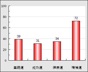 成功運 目的に対する成功運の強さをあらわします。この点数が高いほど自分の思い通りに成功し、逆に悪いと逆境・批判・障害などに苦心します。 31点