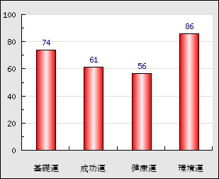 環境運 家庭や職場等での援助運・環境運を司ります。これが良いと配偶者や子供・職場の同僚などから助力が得られやすく、悪いと波乱・不和・孤独などがあります。 86点