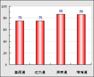 成功運 目的に対する成功運の強さをあらわします。この点数が高いほど自分の思い通りに成功し、逆に悪いと逆境・批判・障害などに苦心します。 75点