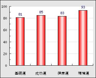 環境運 家庭や職場等での援助運・環境運を司ります。これが良いと配偶者や子供・職場の同僚などから助力が得られやすく、悪いと波乱・不和・孤独などがあります。 93点