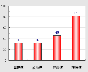 環境運 家庭や職場等での援助運・環境運を司ります。これが良いと配偶者や子供・職場の同僚などから助力が得られやすく、悪いと波乱・不和・孤独などがあります。 81点