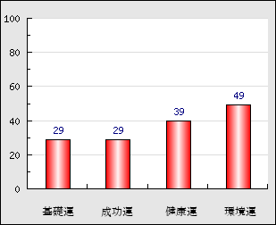 環境運 家庭や職場等での援助運・環境運を司ります。これが良いと配偶者や子供・職場の同僚などから助力が得られやすく、悪いと波乱・不和・孤独などがあります。 49点
