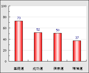 成功運 目的に対する成功運の強さをあらわします。この点数が高いほど自分の思い通りに成功し、逆に悪いと逆境・批判・障害などに苦心します。 52点