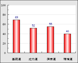 環境運 家庭や職場等での援助運・環境運を司ります。これが良いと配偶者や子供・職場の同僚などから助力が得られやすく、悪いと波乱・不和・孤独などがあります。 40点