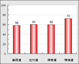 環境運 家庭や職場等での援助運・環境運を司ります。これが良いと配偶者や子供・職場の同僚などから助力が得られやすく、悪いと波乱・不和・孤独などがあります。 72点