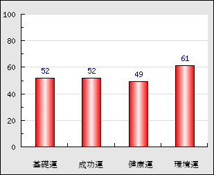 環境運 家庭や職場等での援助運・環境運を司ります。これが良いと配偶者や子供・職場の同僚などから助力が得られやすく、悪いと波乱・不和・孤独などがあります。 61点