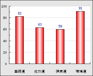環境運 家庭や職場等での援助運・環境運を司ります。これが良いと配偶者や子供・職場の同僚などから助力が得られやすく、悪いと波乱・不和・孤独などがあります。 91点