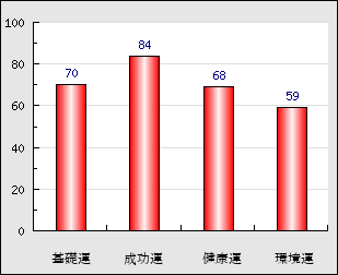成功運 目的に対する成功運の強さをあらわします。この点数が高いほど自分の思い通りに成功し、逆に悪いと逆境・批判・障害などに苦心します。 84点