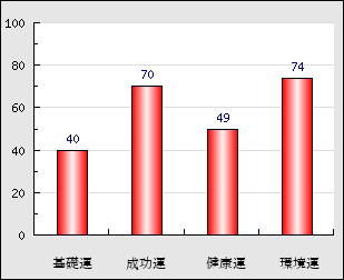 成功運 目的に対する成功運の強さをあらわします。この点数が高いほど自分の思い通りに成功し、逆に悪いと逆境・批判・障害などに苦心します。 70点