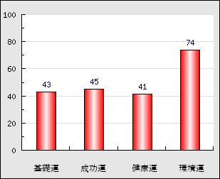 環境運 家庭や職場等での援助運・環境運を司ります。これが良いと配偶者や子供・職場の同僚などから助力が得られやすく、悪いと波乱・不和・孤独などがあります。 74点