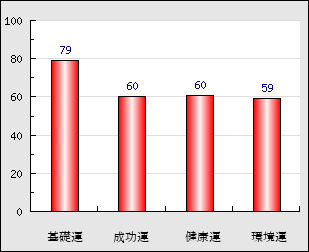 成功運 目的に対する成功運の強さをあらわします。この点数が高いほど自分の思い通りに成功し、逆に悪いと逆境・批判・障害などに苦心します。 60点
