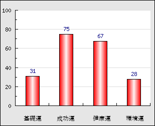 成功運 目的に対する成功運の強さをあらわします。この点数が高いほど自分の思い通りに成功し、逆に悪いと逆境・批判・障害などに苦心します。 75点