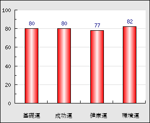 成功運 目的に対する成功運の強さをあらわします。この点数が高いほど自分の思い通りに成功し、逆に悪いと逆境・批判・障害などに苦心します。 80点