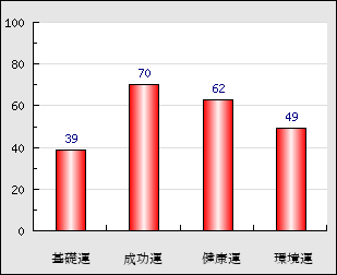 成功運 目的に対する成功運の強さをあらわします。この点数が高いほど自分の思い通りに成功し、逆に悪いと逆境・批判・障害などに苦心します。 70点