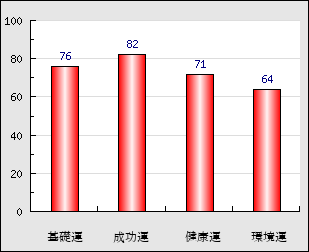 成功運 目的に対する成功運の強さをあらわします。この点数が高いほど自分の思い通りに成功し、逆に悪いと逆境・批判・障害などに苦心します。 82点