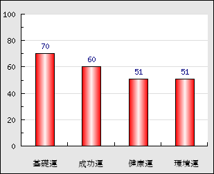 成功運 目的に対する成功運の強さをあらわします。この点数が高いほど自分の思い通りに成功し、逆に悪いと逆境・批判・障害などに苦心します。 60点