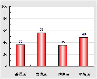 環境運 家庭や職場等での援助運・環境運を司ります。これが良いと配偶者や子供・職場の同僚などから助力が得られやすく、悪いと波乱・不和・孤独などがあります。 48点