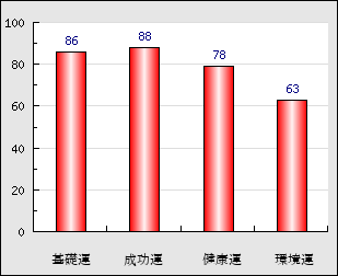 成功運 目的に対する成功運の強さをあらわします。この点数が高いほど自分の思い通りに成功し、逆に悪いと逆境・批判・障害などに苦心します。 88点