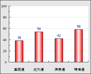 環境運 家庭や職場等での援助運・環境運を司ります。これが良いと配偶者や子供・職場の同僚などから助力が得られやすく、悪いと波乱・不和・孤独などがあります。 58点