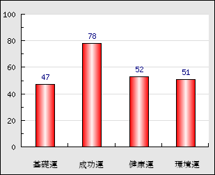 環境運 家庭や職場等での援助運・環境運を司ります。これが良いと配偶者や子供・職場の同僚などから助力が得られやすく、悪いと波乱・不和・孤独などがあります。 51点