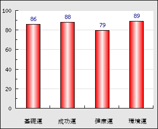 環境運 家庭や職場等での援助運・環境運を司ります。これが良いと配偶者や子供・職場の同僚などから助力が得られやすく、悪いと波乱・不和・孤独などがあります。 89点