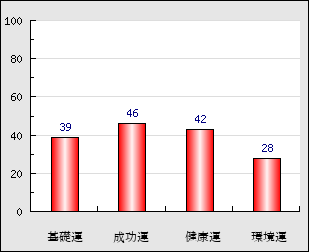 環境運 家庭や職場等での援助運・環境運を司ります。これが良いと配偶者や子供・職場の同僚などから助力が得られやすく、悪いと波乱・不和・孤独などがあります。 28点