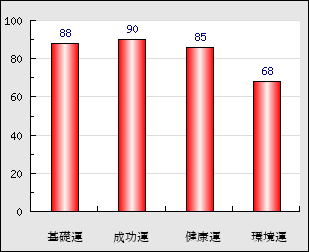 成功運 目的に対する成功運の強さをあらわします。この点数が高いほど自分の思い通りに成功し、逆に悪いと逆境・批判・障害などに苦心します。 90点