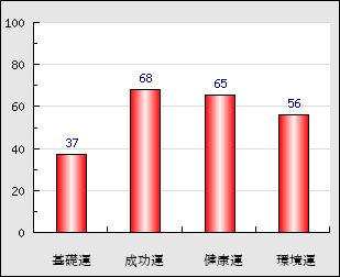 成功運 目的に対する成功運の強さをあらわします。この点数が高いほど自分の思い通りに成功し、逆に悪いと逆境・批判・障害などに苦心します。 68点