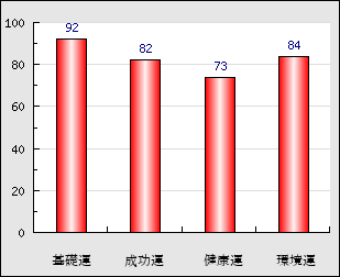環境運 家庭や職場等での援助運・環境運を司ります。これが良いと配偶者や子供・職場の同僚などから助力が得られやすく、悪いと波乱・不和・孤独などがあります。 84点