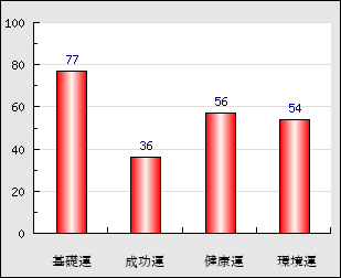 環境運 家庭や職場等での援助運・環境運を司ります。これが良いと配偶者や子供・職場の同僚などから助力が得られやすく、悪いと波乱・不和・孤独などがあります。 54点