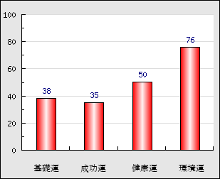 環境運 家庭や職場等での援助運・環境運を司ります。これが良いと配偶者や子供・職場の同僚などから助力が得られやすく、悪いと波乱・不和・孤独などがあります。 76点
