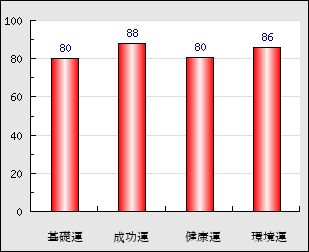 環境運 家庭や職場等での援助運・環境運を司ります。これが良いと配偶者や子供・職場の同僚などから助力が得られやすく、悪いと波乱・不和・孤独などがあります。 86点