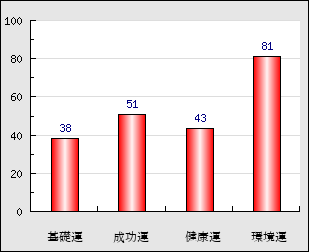 環境運 家庭や職場等での援助運・環境運を司ります。これが良いと配偶者や子供・職場の同僚などから助力が得られやすく、悪いと波乱・不和・孤独などがあります。 81点