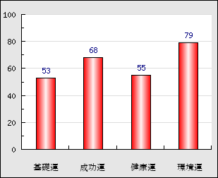 環境運 家庭や職場等での援助運・環境運を司ります。これが良いと配偶者や子供・職場の同僚などから助力が得られやすく、悪いと波乱・不和・孤独などがあります。 79点