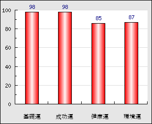 | 環境運 | 家庭や職場等での援助運・環境運を司ります。これが良いと配偶者や子供・職場の同僚などから助力が得られやすく、悪いと波乱・不和・孤独などがあります。 | 87点 |