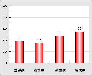 環境運 家庭や職場等での援助運・環境運を司ります。これが良いと配偶者や子供・職場の同僚などから助力が得られやすく、悪いと波乱・不和・孤独などがあります。 55点