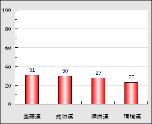 成功運 目的に対する成功運の強さをあらわします。この点数が高いほど自分の思い通りに成功し、逆に悪いと逆境・批判・障害などに苦心します。 30点