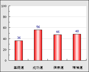 環境運 家庭や職場等での援助運・環境運を司ります。これが良いと配偶者や子供・職場の同僚などから助力が得られやすく、悪いと波乱・不和・孤独などがあります。 48点
