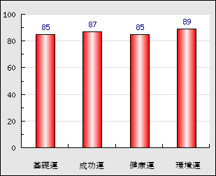 環境運 家庭や職場等での援助運・環境運を司ります。これが良いと配偶者や子供・職場の同僚などから助力が得られやすく、悪いと波乱・不和・孤独などがあります。 89点