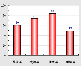 環境運 家庭や職場等での援助運・環境運を司ります。これが良いと配偶者や子供・職場の同僚などから助力が得られやすく、悪いと波乱・不和・孤独などがあります。 49点