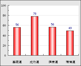 環境運 家庭や職場等での援助運・環境運を司ります。これが良いと配偶者や子供・職場の同僚などから助力が得られやすく、悪いと波乱・不和・孤独などがあります。 49点