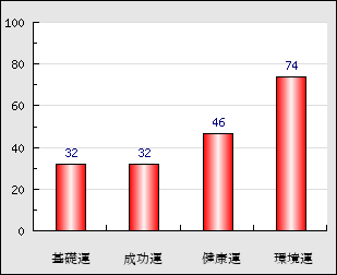 環境運 家庭や職場等での援助運・環境運を司ります。これが良いと配偶者や子供・職場の同僚などから助力が得られやすく、悪いと波乱・不和・孤独などがあります。 74点