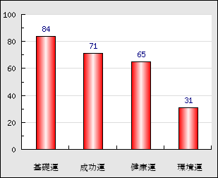 環境運 家庭や職場等での援助運・環境運を司ります。これが良いと配偶者や子供・職場の同僚などから助力が得られやすく、悪いと波乱・不和・孤独などがあります。 31点