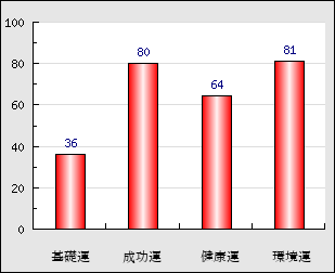 環境運 家庭や職場等での援助運・環境運を司ります。これが良いと配偶者や子供・職場の同僚などから助力が得られやすく、悪いと波乱・不和・孤独などがあります。 81点