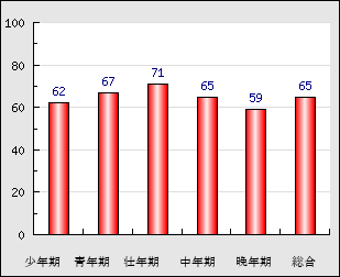 | 中年期 | 50~65歳頃 | 65点 0.0 |