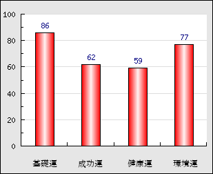 成功運 目的に対する成功運の強さをあらわします。この点数が高いほど自分の思い通りに成功し、逆に悪いと逆境・批判・障害などに苦心します。 62点