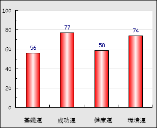 環境運 家庭や職場等での援助運・環境運を司ります。これが良いと配偶者や子供・職場の同僚などから助力が得られやすく、悪いと波乱・不和・孤独などがあります。 74点